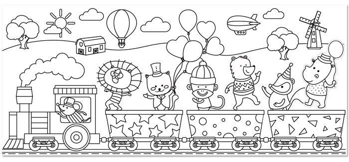 Színező tekercs, öntapadó, 31x355 cm, STICK N, parti vonat