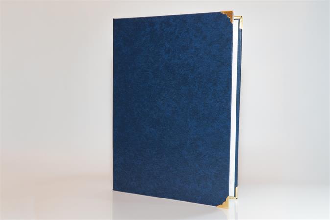 Oklevéltartó, A4, exkluzív, műbőr, 4 fém sarokkal, kék